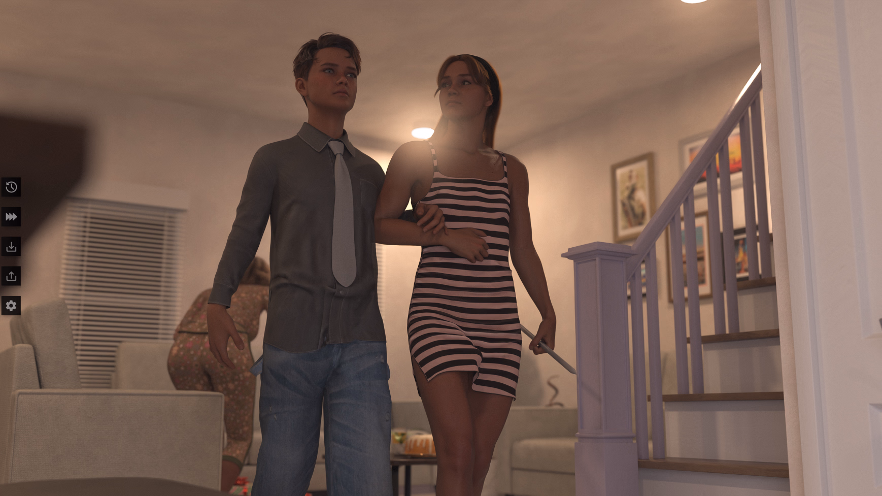 3dcg, animated, male protagonist, milf, incest, teasing, big ass, handholding, mobile game,