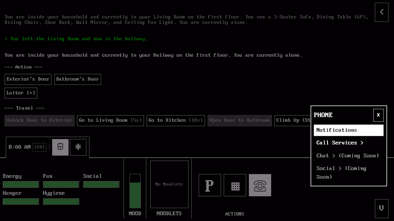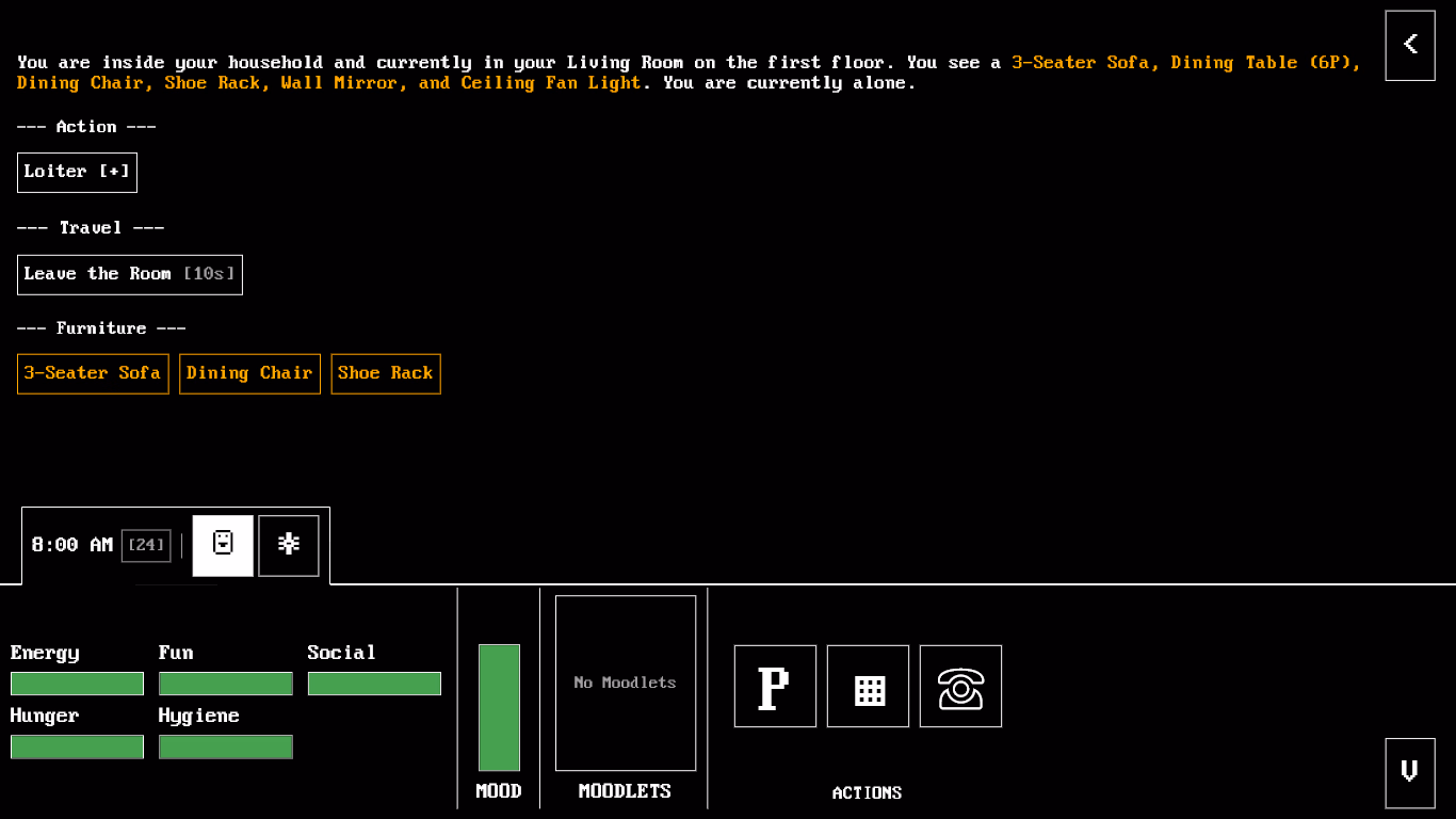 – As of v0.0.1, the game is still in ‘early development’ and most interaction has no consequences
