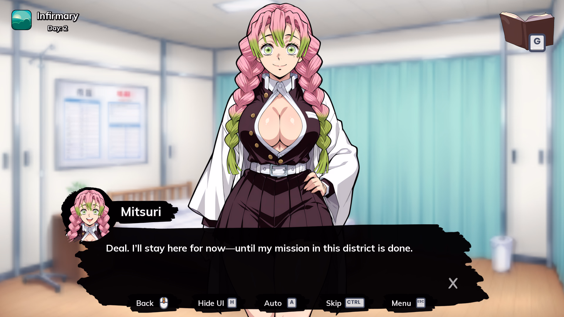 Lewd Slayer Inn is an unapologetically erotic parody visual novel set in a lantern-lit refuge just steps from the Entertainment District. You’re the new host of the Lantern Fox Inn—skilled hands, calm voice, and a gift for reading desire as easily as pulse. By day you mend and manage; by night you flirt, tease, and melt away tension behind discreet screens so slayers return to duty focused and fearless. Reimagined favorites like Shinobu, Mitsuri, and Tamayo check in with their own needs, kinks, and boundaries—while a certain FemMuzan watches with curious interest. Explore the inn, the forest road, and the district; run errands, trade favors, and build trust to unlock intimate moments. Routes progress from playful peeks to bolder requests and dedicated H-quests, with single-CG scenes and outfit variations that evolve as your relationship heats up—all consent-driven, all about chemistry.