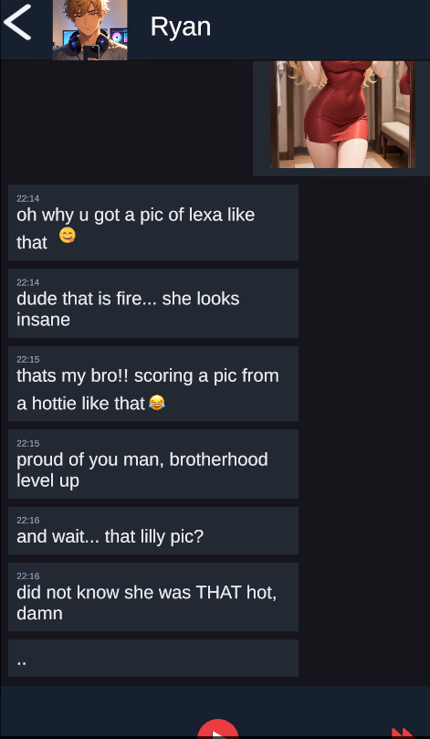 You play as Chris, a 25-year-old software engineer and gamer, and navigate flirty chats, social drama, and risky choices with Lilly, Ryan, and Lexa. The game uses a phone-style interface with messaging, social feed, gallery, and media sharing to create an immersive modern romance/drama experience.