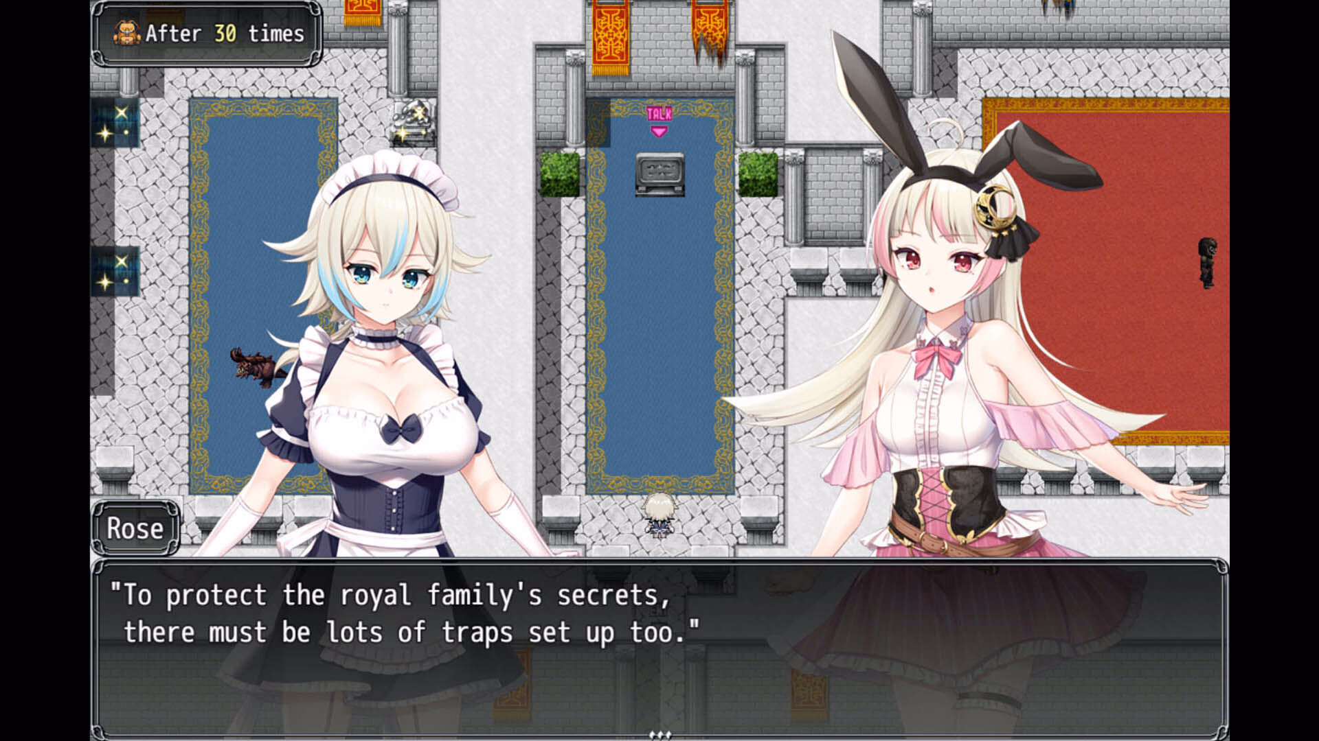 Switch between twin protagonist sisters Liz and Rose to navigate the perilous streets and tiered city walls of Fahran. Uncover secrets, and outwit foes in this “atelier-rific” doujin RPG!