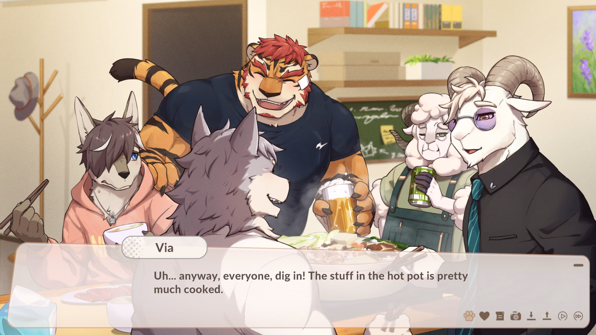 "Trivia About You" is a romance visual novel about furry characters sharing meaningful moments in Carol’s House. After moving into the shop, you become roommates with three charming furry characters. Through daily life, from spring to autumn, you slowly build deeper connections with them.