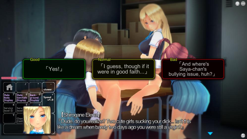 But, Sayo has fallen victim to a dastardly trap set by the schools Queen Bee Elena and is now a raving sex addict. Will you attempt to save Sayo? Or perhaps lend a helping hand in her descent into debauchery.