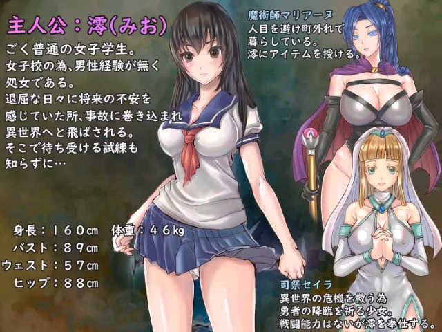 The only way to return to the original world is to defeat the demon emperor who plans to invade with his holy sword, Futanari, and his subordinates, the women, by having s3x inside them, and fulfill the role of a hero.