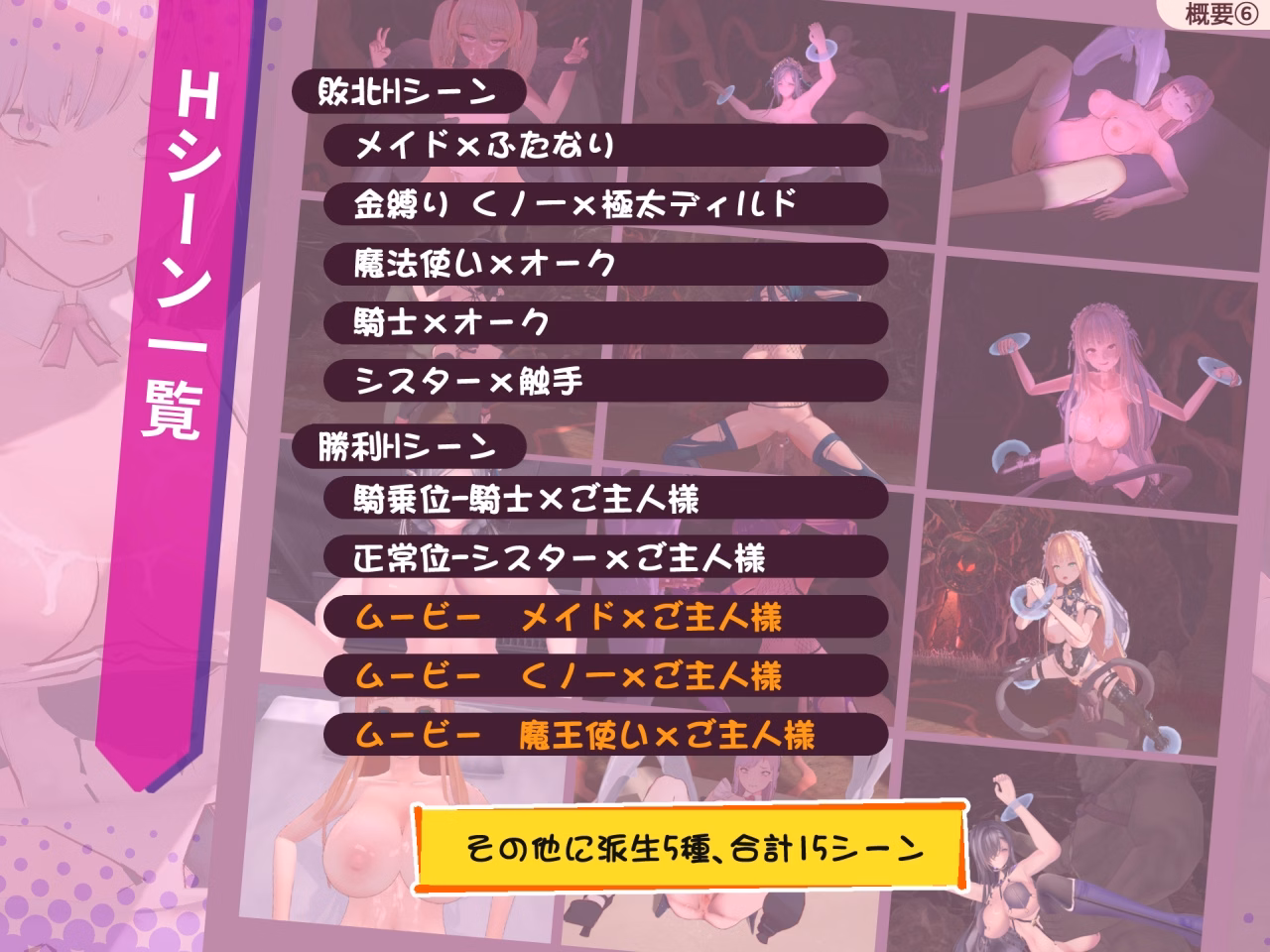 There are three types of victory H-scenes, presented in first-person view, fully voiced, with a total runtime of approximately 19 minutes.