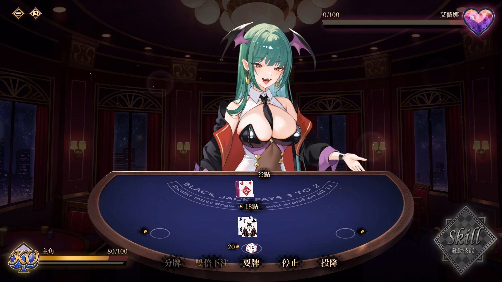 “Lustful BlackJack: My Succubus Dealer” is a seductive masterpiece that perfectly combines the gameplay of Blackjack with an adult-oriented visual novel. In this captivating game, players will engage in a battle of wits and charm against a playful and alluring succubus dealer.