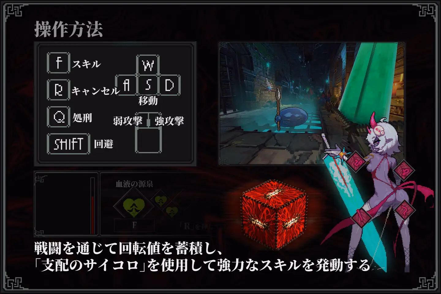 Press F to activate skills, and R to cancel a skill (resetting its charge/progress).