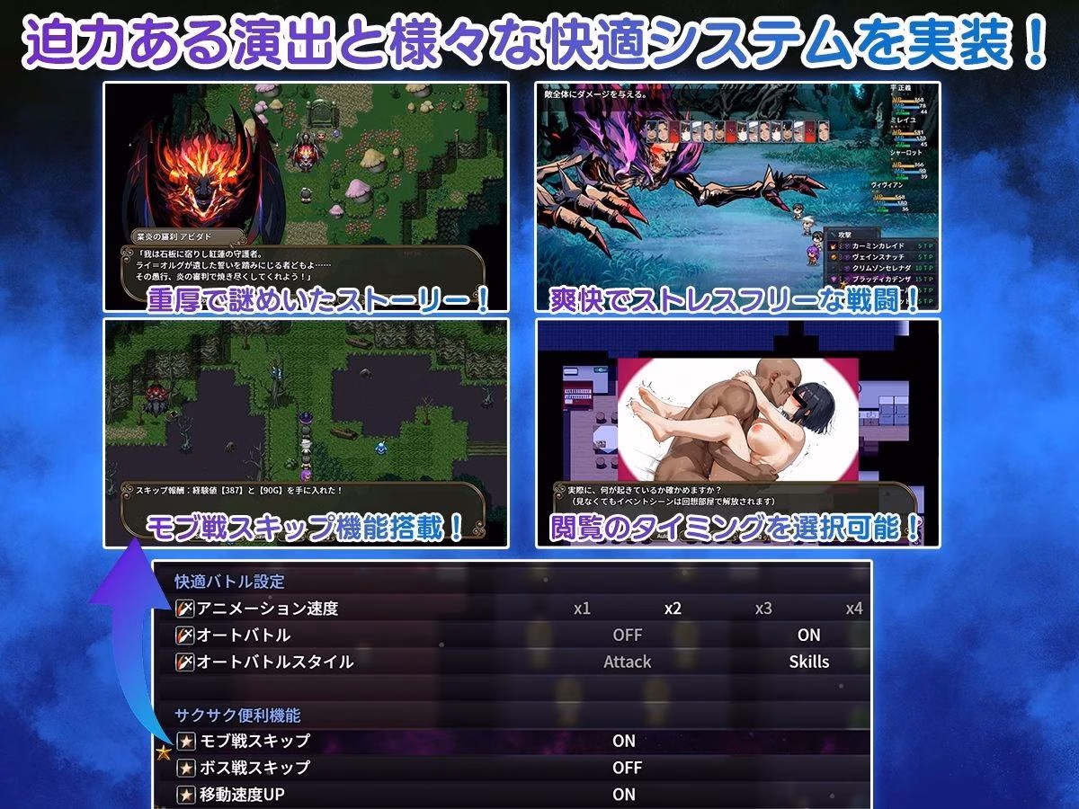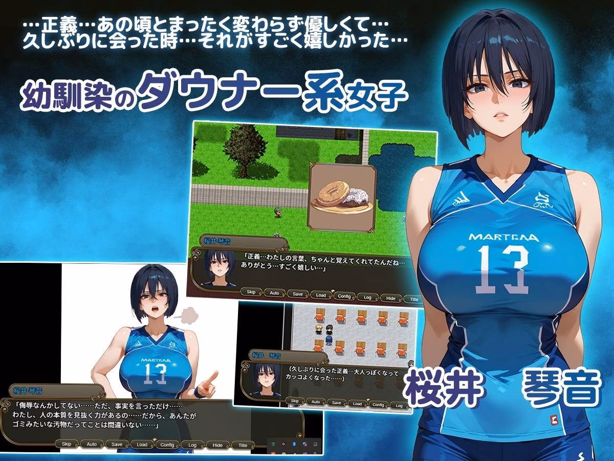 A depraved drama in which the girls of the school are instilled with false common sense and distorted sexual habits by the magician Gallivan who came from another world, and are cuckolded one after another. There are five cuckold heroines (Kotone, a childhood friend and member of the girls’ volleyball team; Kyoko, the homeroom teacher and former professional female soccer player; Yumi, the sister of the best friend and captain of the girls’ basketball team; Misaki, the sister and member of the girls’ soccer team; and Reiko, the school’s chairman). The impact of the cuckold situation is emphasized by carefully depicting the sweet and sour, faint love between the heroines and the protagonist, Masayoshi, and the heroines’ straightforward efforts toward their dreams.