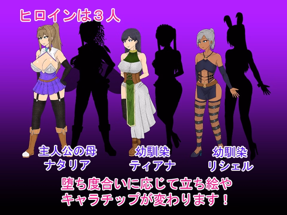 You play as the Hero. Your party consists of 3 hot heroines – your mother, and two old friends.