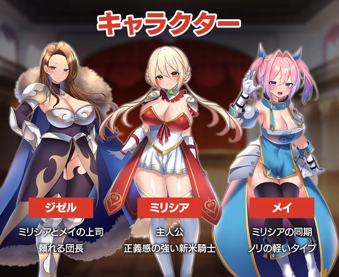 Militia works to fulfil her knightly duties alongside her superior, Giselle, and her fellow knight, Mei.