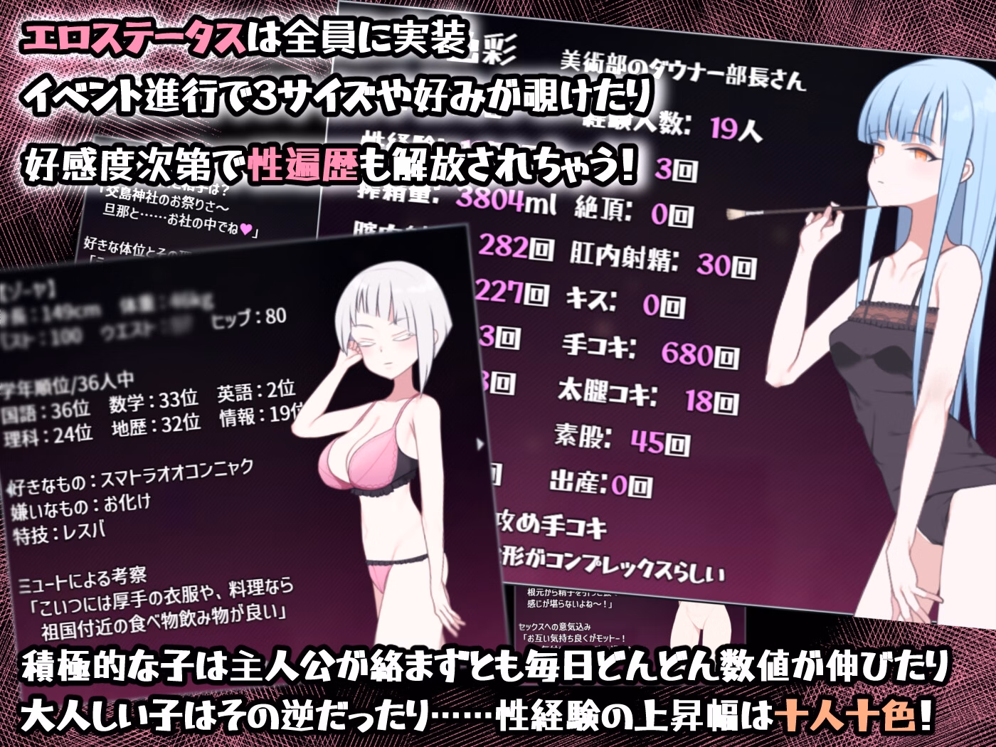 2D Game, 2DCG, Anal sex, Censored, Japanese Game, Groping, Group sex, Handjob, Harem, Male Protagonist, Milf, Multiple endings, Oral sex, Rape, Rpg, Sandbox, School setting, Vaginal sex,