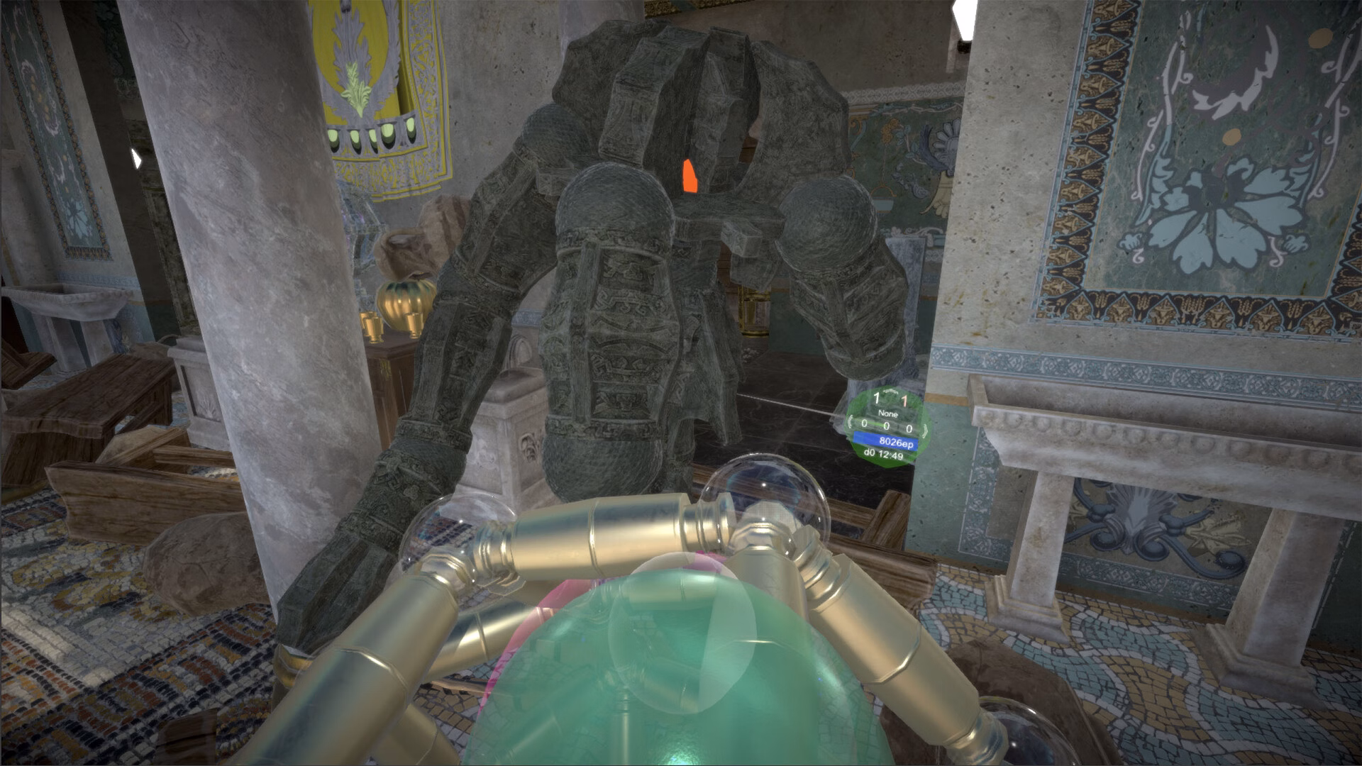 * When playing in VR, the game is designed for seated play. A head-mounted display replaces the monitor, and a single VR controller is used instead of a keyboard and mouse.