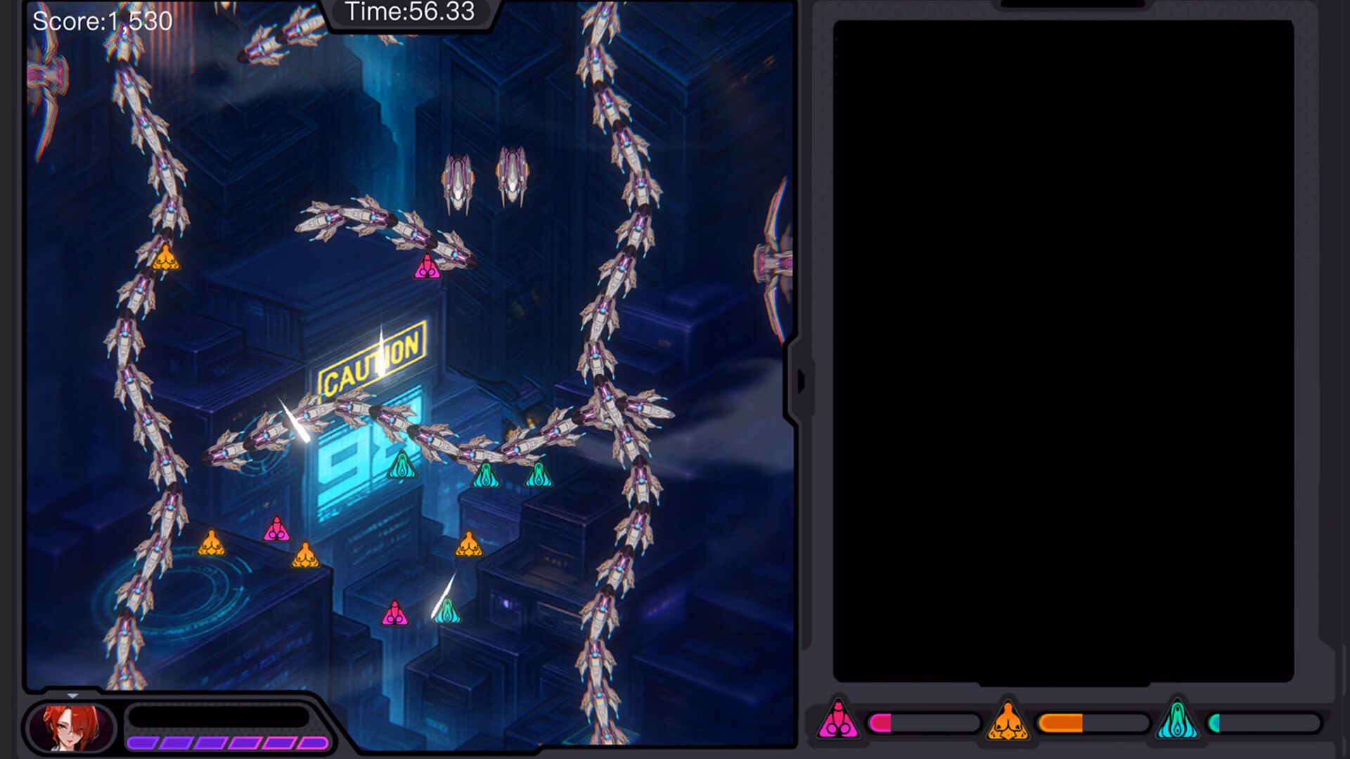 Overview A 2D vertical-scrolling sci-fi shooter that combines classic arcade combat with adult-themed story progression, where enemy Valkyries are gradually converted into your exclusive co-pilots through resonance.