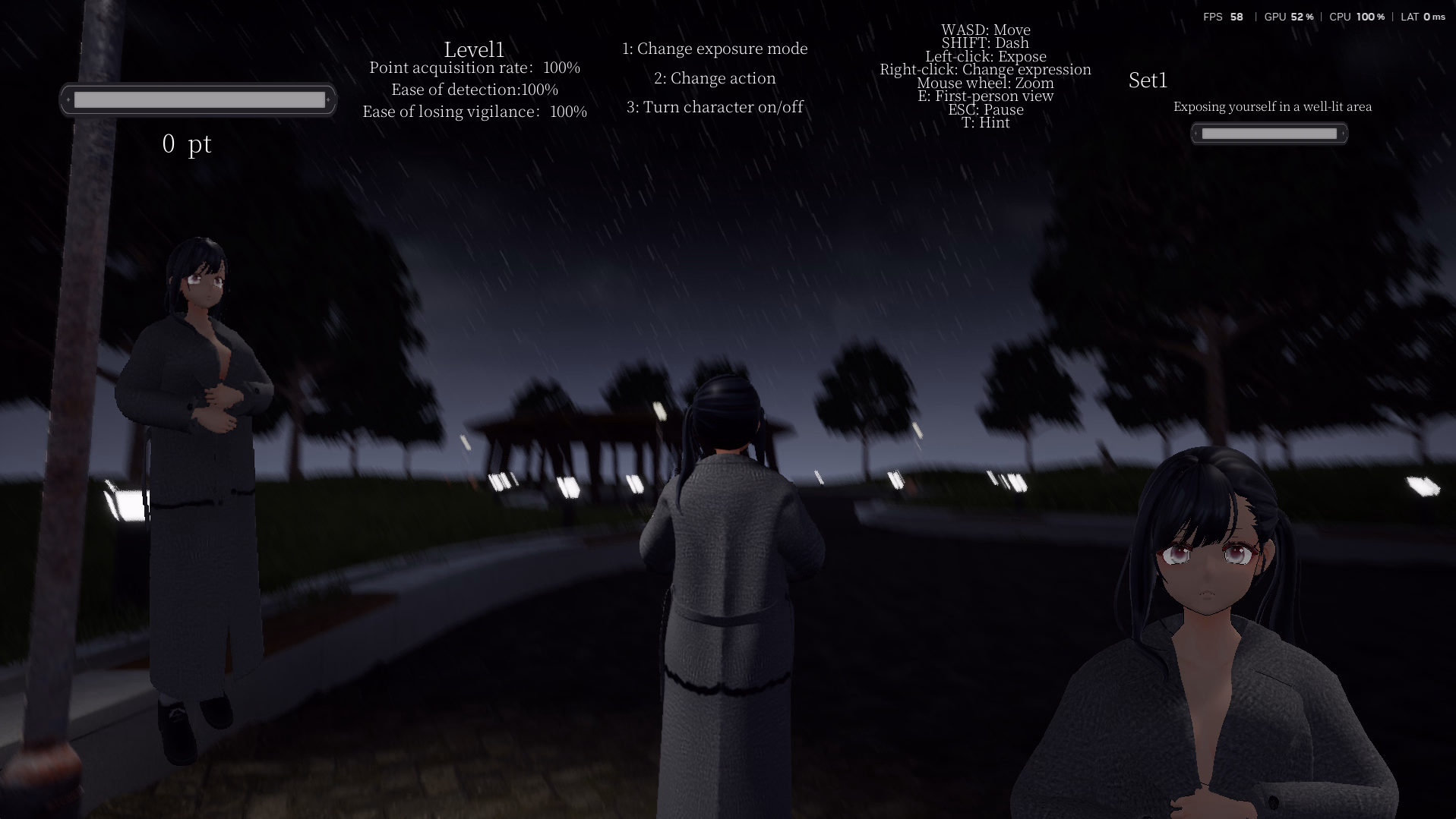 For example, you can set an ahegao face when making a double peace sign, or a shy expression when peeing… You can change the facial expression and body shape to match what you’ve set during the exposure challenge.