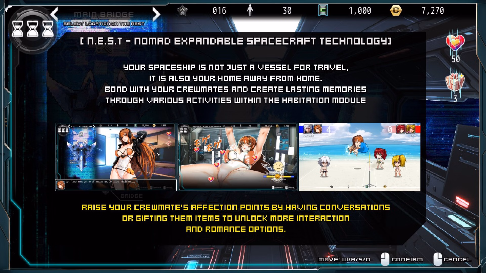 Manage your time at the NEST, the advanced spacecraft Prominus-1.