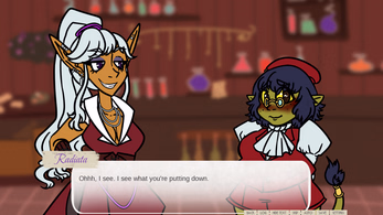 Brew and Me is a short kinetic eroge featuring a trans elf woman with a gender-questioning goblin in a slice-of-life fantasy. It contains 6000+ words, 7 CGs with alts, and partial voice acting.