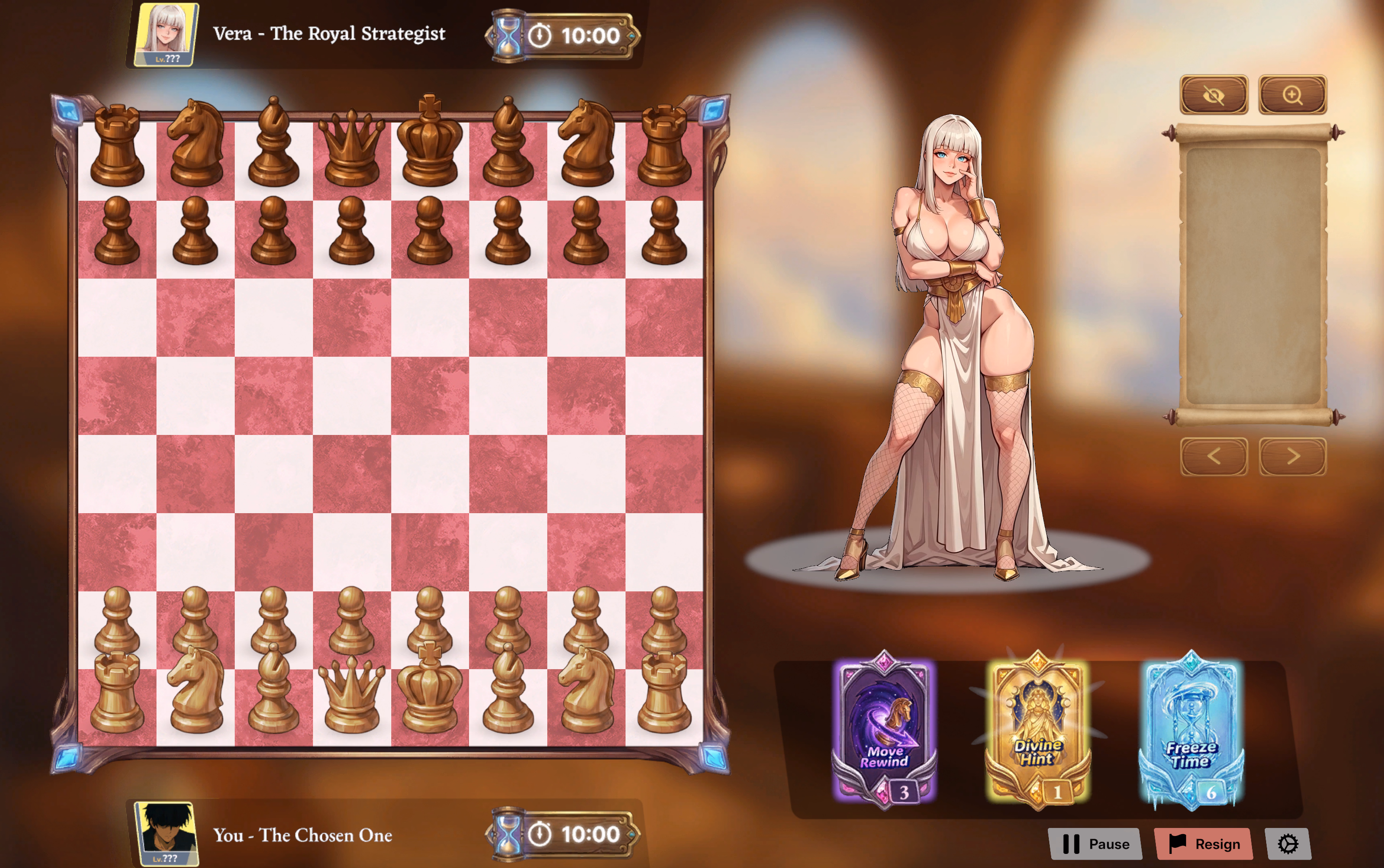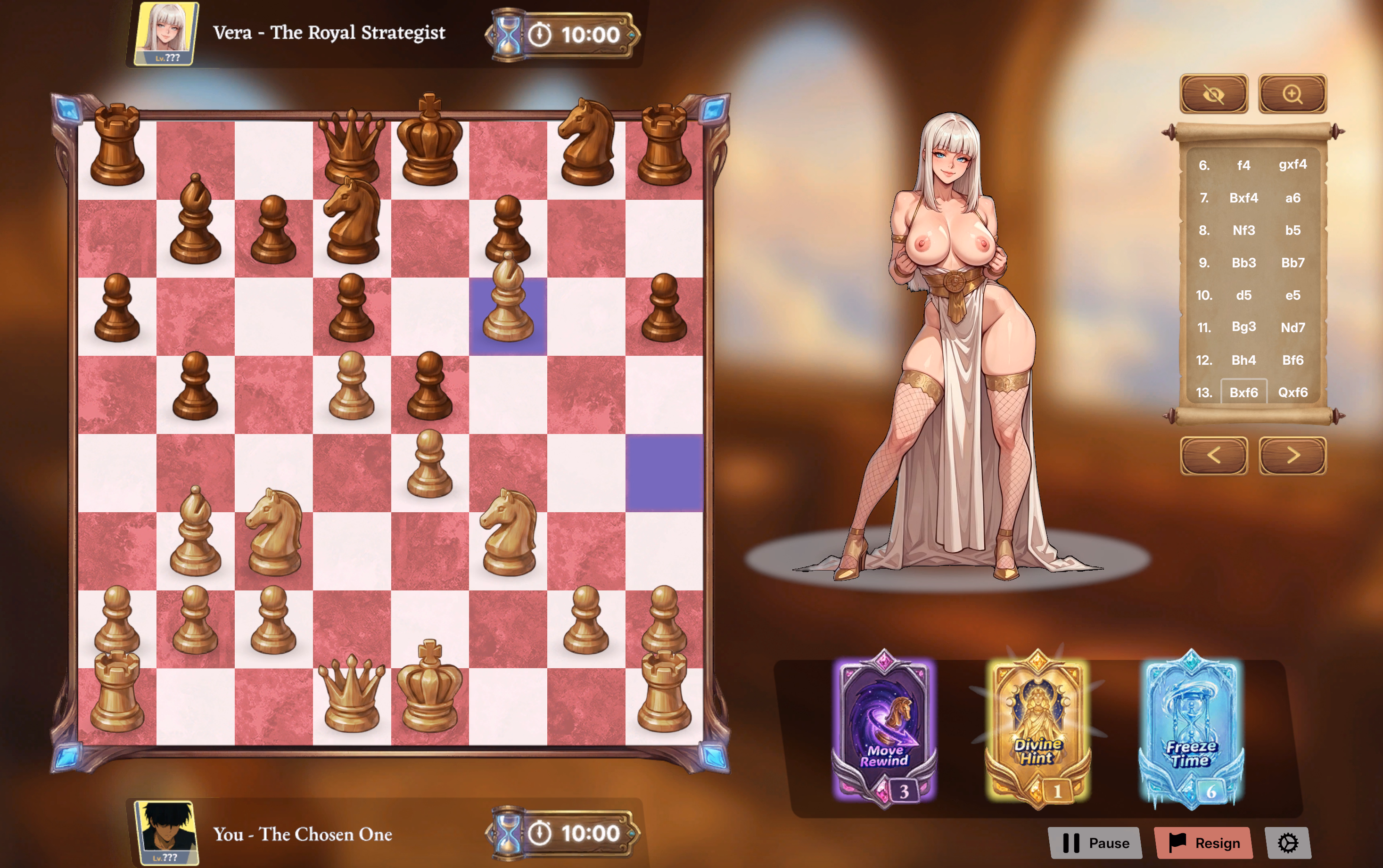 Take the game of Chess to the next level in a fantasy world where strategy meets seduction. Face gorgeous rivals in the Check-Mate variant, where each capture brings teasing undressing and every victory unlocks animated H-scenes. Countless game modes, rich story, and irresistible gameplay await.