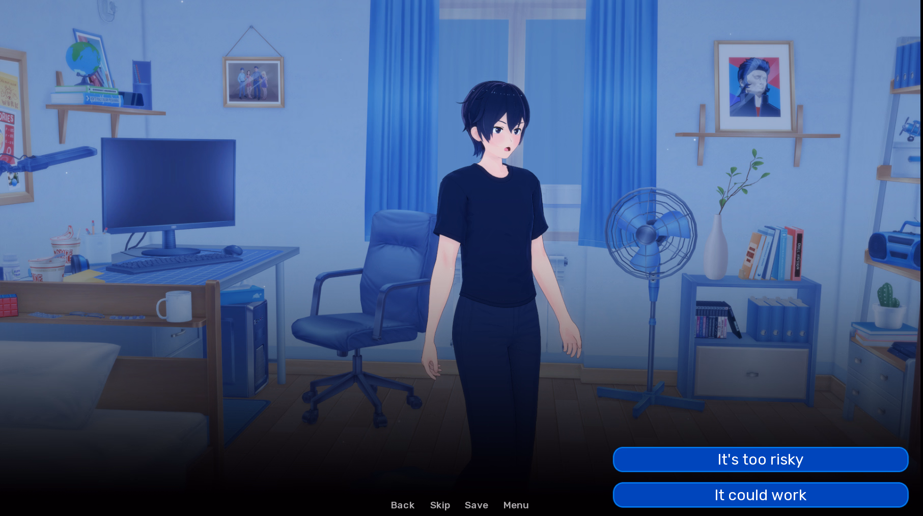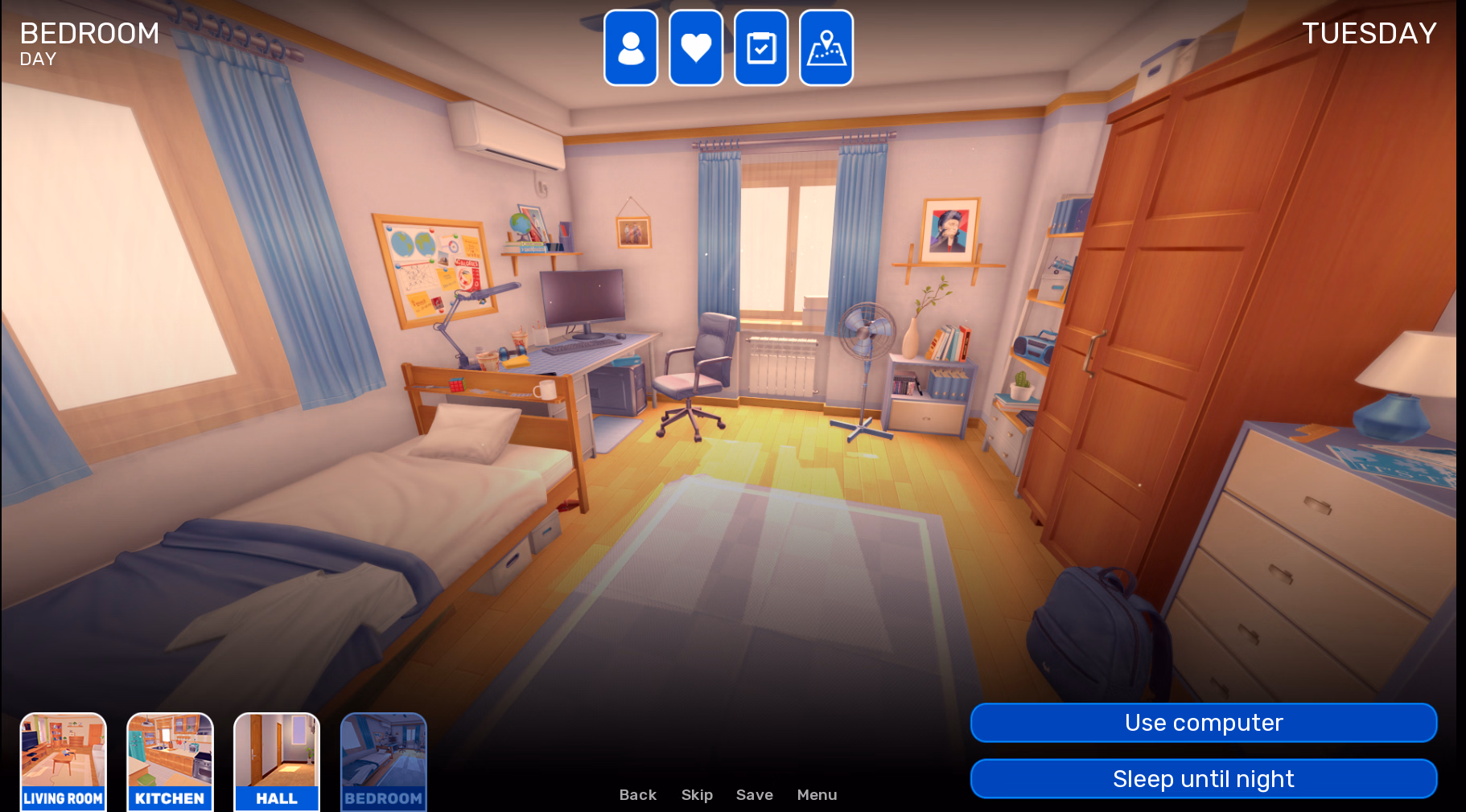 Dream Journey mixes narrative-driven scenes with a living daily simulation. You move through your house, manage your time across a day/night cycle, use an in-game computer to check emails and social media, and make choices that shape how the story — and your agency — unfolds.