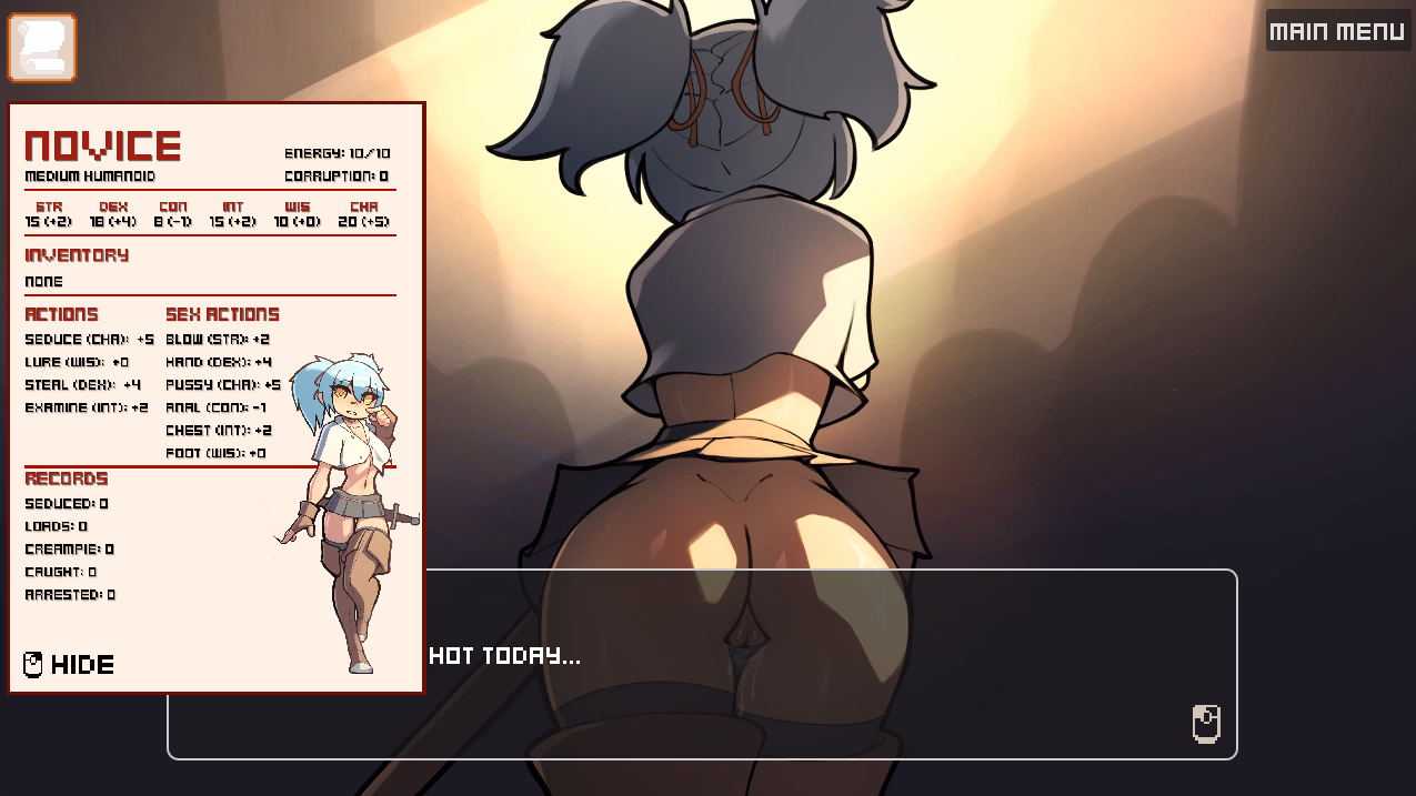 Cursed, corrupted, and dripping. Guide a novice through her first exciting (and very lewd) steps of her journey, though her battles might be a little more… wet than she expected. When her back’s against wall (or the floor), what move will you make? Help her through her cursed desires, or watch how far she can fall.​