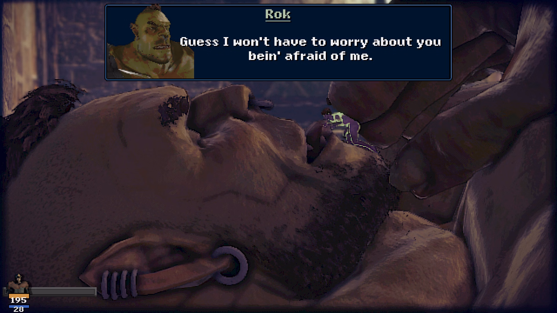 Orc Bastion is a gay adult-oriented JRPG about serving orcs, demons, men and monsters. Fight for peace between mankind and the denizens of hell with your orc master, find allies and become a force to be reckoned with — while meeting and intimately getting to know all sorts of guys and monsters on the way.