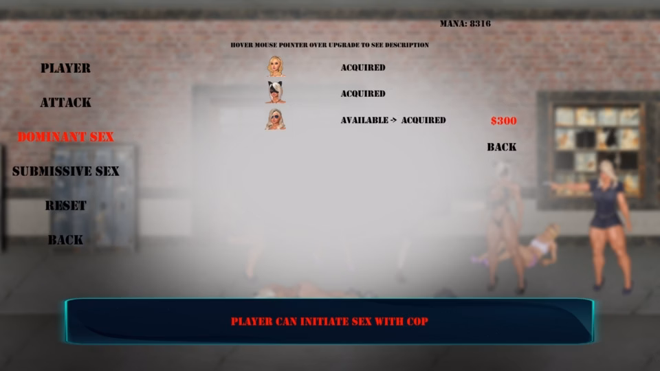 Alpha release2 levelsEntranceBasement3 enemiesPixieNinjaCop6 total animations3 Dominant3 Submissive