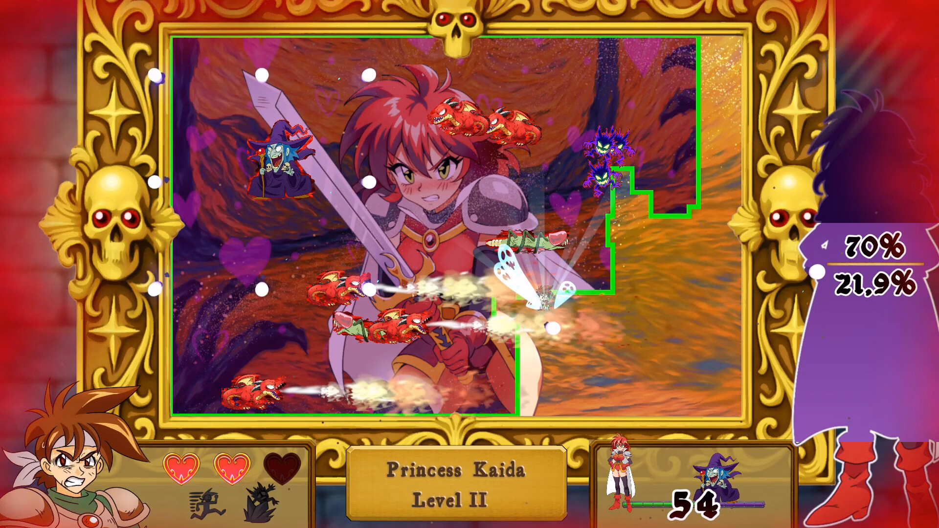 Dodge enemies, cut through the canvases with precision, and gradually free the five beauties trapped in the warlock’s gallery.