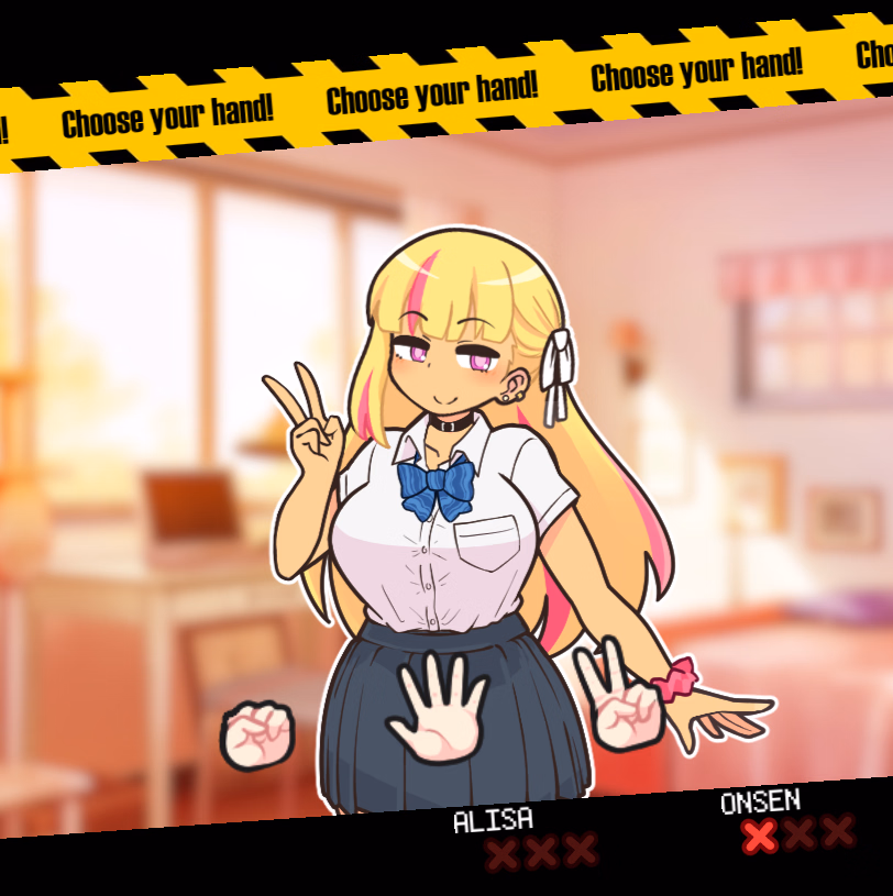 A cheeky Rock, Paper, Scissors game where your opponent is your childhood-friend-turned-gal!