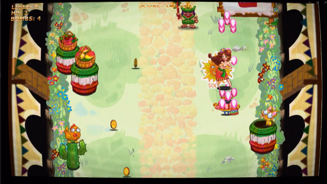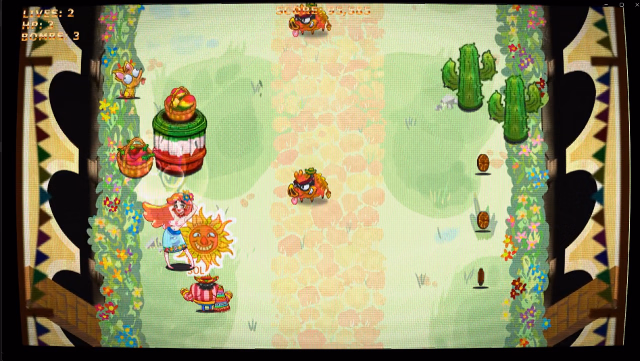 Viva la Fiesta! is a retro arcade shoot’em up where you play as Señor Presidente, the current representative of an ancient lineage of warriors. During the Festival of Flowers, the evil god Ah Puch awakens from his slumber and kidnaps the most beautiful participants of the festival, transforming them into monsters at his service. Your mission is to defeat these monsters, rescue the girls, and receive your well-earned reward.