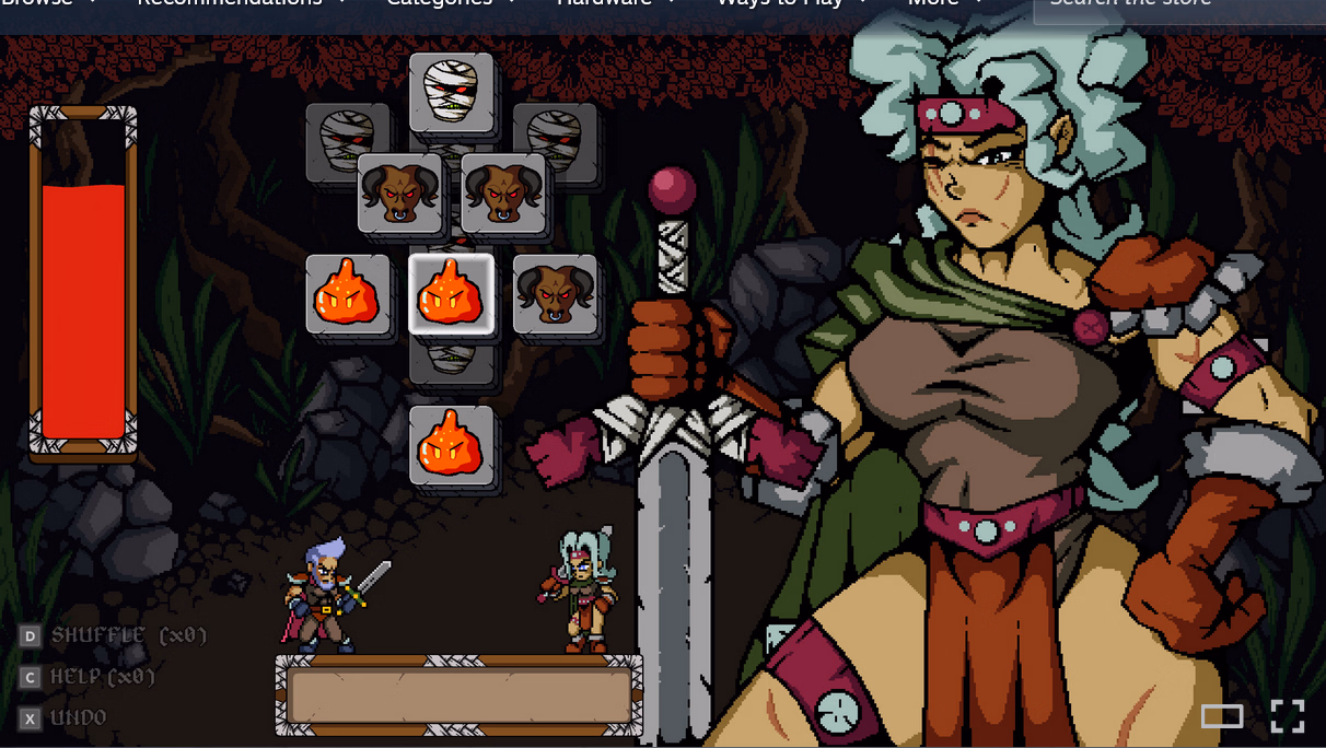 Matching 3 gameplay (mahjong)Beautiful pixel artHD artwork of the warriors to unlock60 levelsImage gallery6 different granny waifusOrchestral Soundtrack