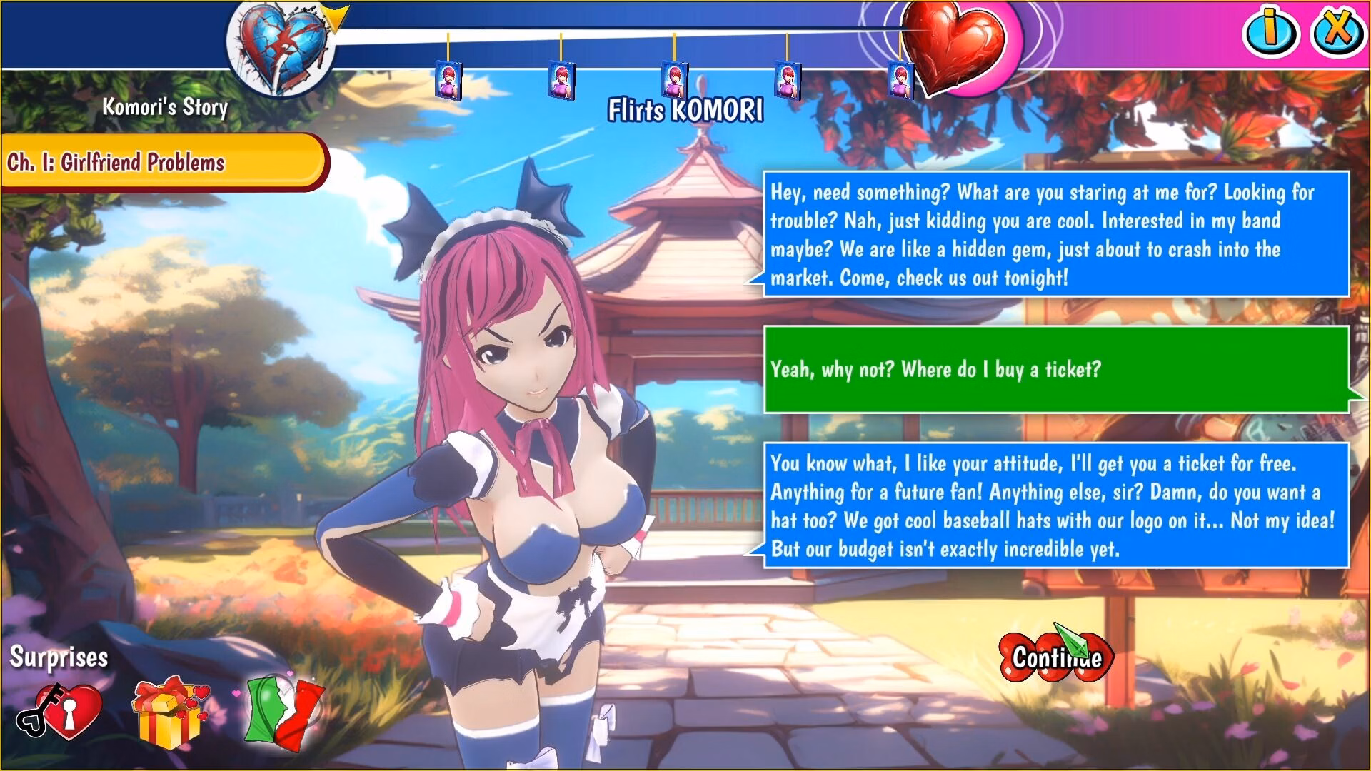 Flirt scenes often involve sexual themes and suggestive dialogue. As rewards for successful interactions, players unlock 3D cutscenes – some are light and playful, others are erotic, and some include explicit sexual content.