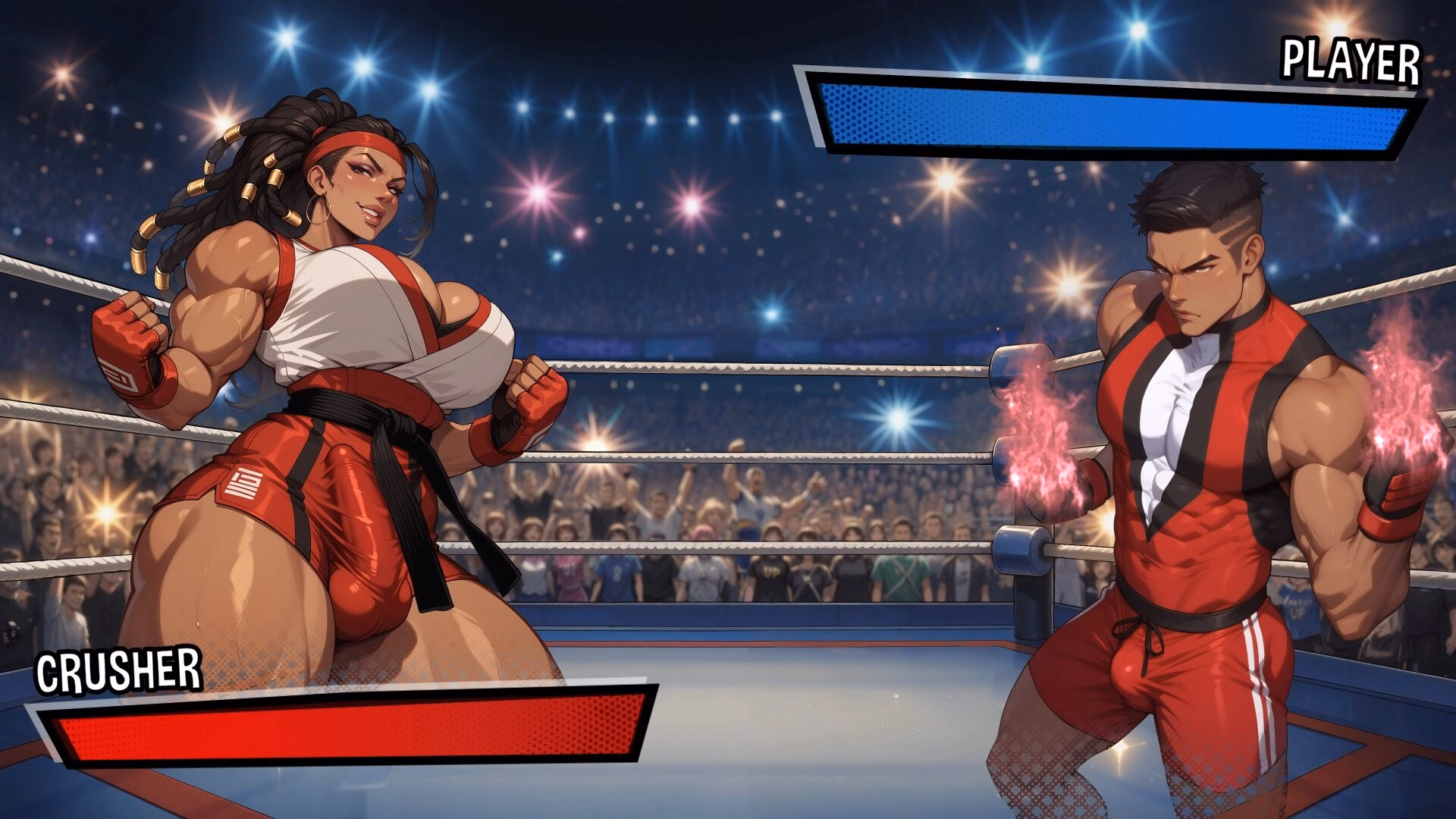 Turn-based 1v1 wrestling with stats, training, and spicy 18+ vibes. Fight femboys and futa rivals, manage energy, hit the gym, and use seduction skills to climb a no-rules tournament packed with sexy surprises.