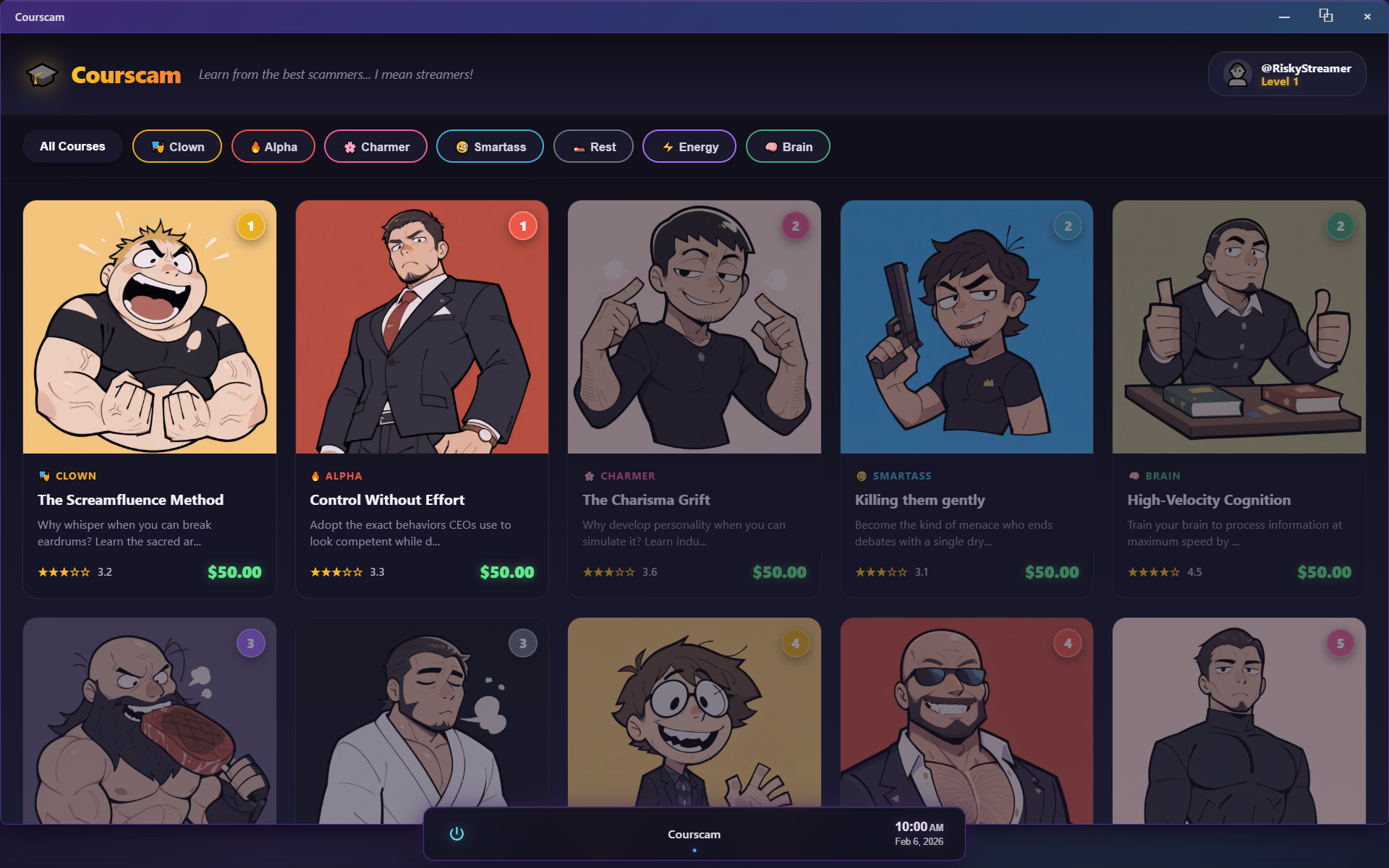 Earn money from your streams, improve your skills, and progress from a no-name beginner into a full-on pro who can talk his way into any girl’s panties.