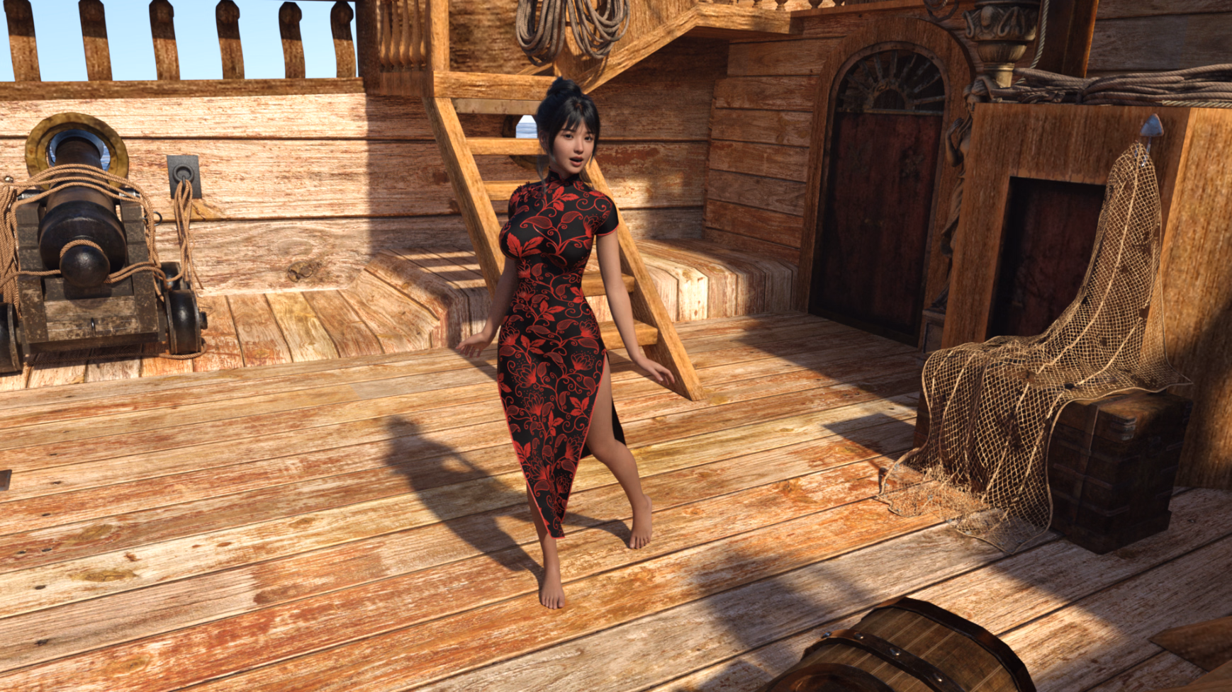 ⚔ EAST MEETS WEST: Experience the ultimate cultural collision. Will you break her icy resolve with your roguish charm, or will her fierce honour be the thing that finally tames your wild heart? UNCHARTED TERRITORY: From the clear pools of hidden springs to the flickering shadows of a driftwood shelter, explore explicit, high-tension encounters. Witness “firsts” that will stain the soul and set the blood on fire. ANATOMICAL CURIOSITY: Put the tavern rumours to rest. Discover the truth of the Orient through Jack’s eyes in intimate, beautifully rendered detail. No more whispers—just the raw, wet reality.️ SURVIVAL OF THE FITTEST: It’s not all play. Hunt wild boars, build shelter, and keep your “precious cargo” safe from the island’s hidden dangers. A clear head is a life-saver, but a “scratched itch” is a necessity. THE TRIBAL WILD: Shuying isn’t the only mystery on this rock. Deep in the emerald canopy, a silent, sun-kissed native woman watches from the shadows… and she’s very curious about the “mainmast” you’re carrying.