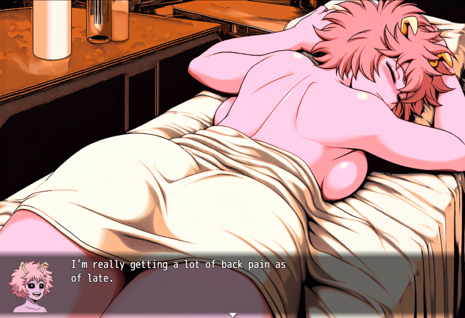 A new main mission was added, where Mina must investigate an anomaly in the slums’ sewers.New Lust Level 2 events were added for the Doctor mission and the HQ underground cleaning mission.A new massage parlor business was added on the beach.A new Lust Level 2 event was added at the hot spring.A new quest log menu was implemented.I included a save in slot 18 to start right before the new content.