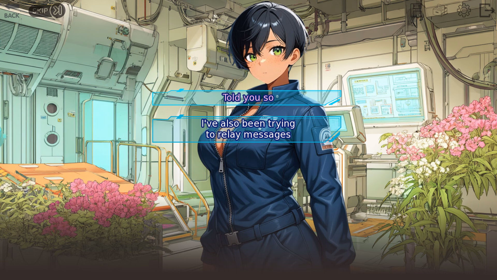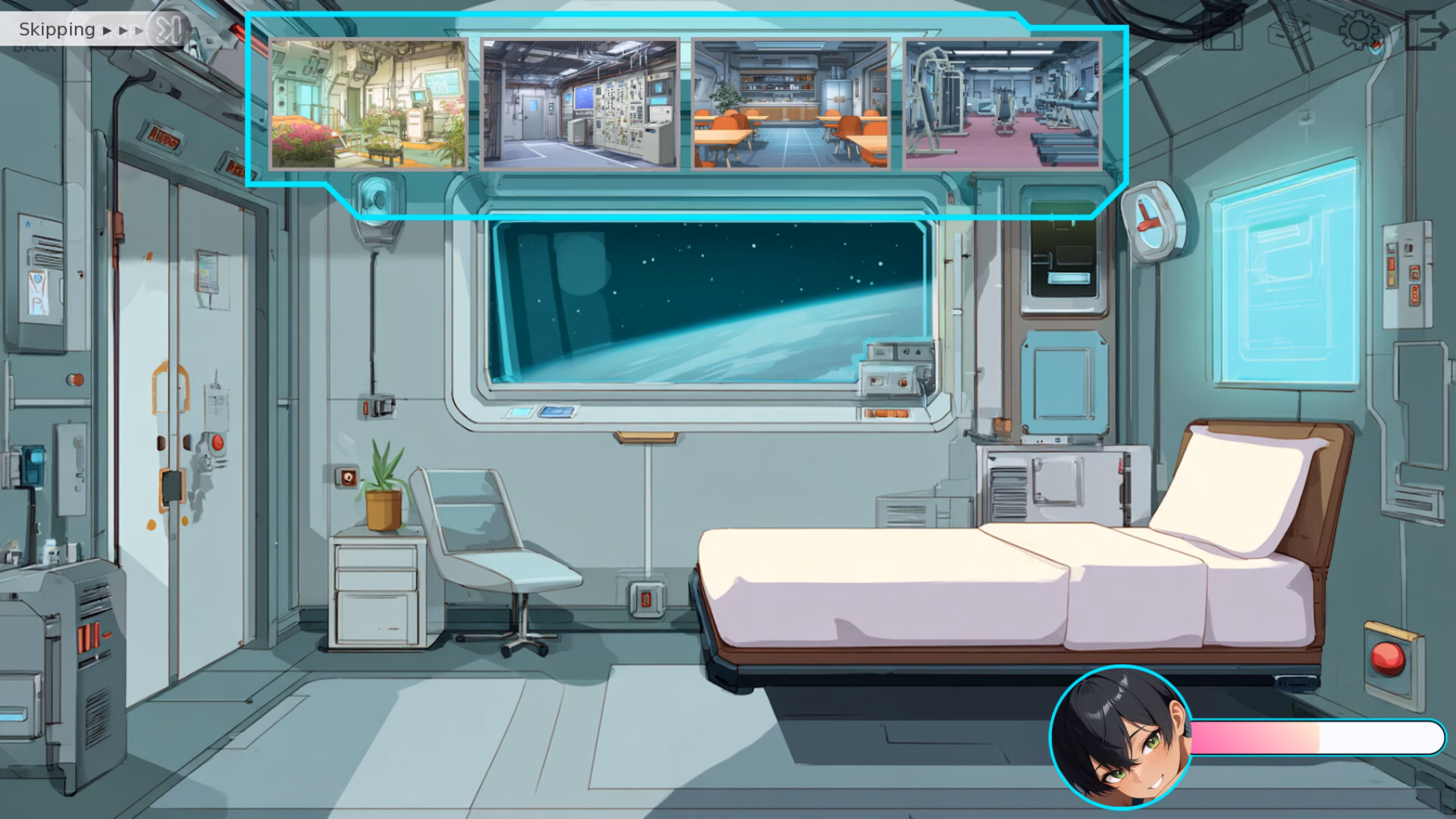 Visit the different rooms available on the space station and learn about Eva’s job amongst the crew, as well as her hopes, dreams, and aspirations. Complete minigames and issued challenges to grow closer together. Who know, perhaps by the end you’ll learn to appreciate and even love each other…